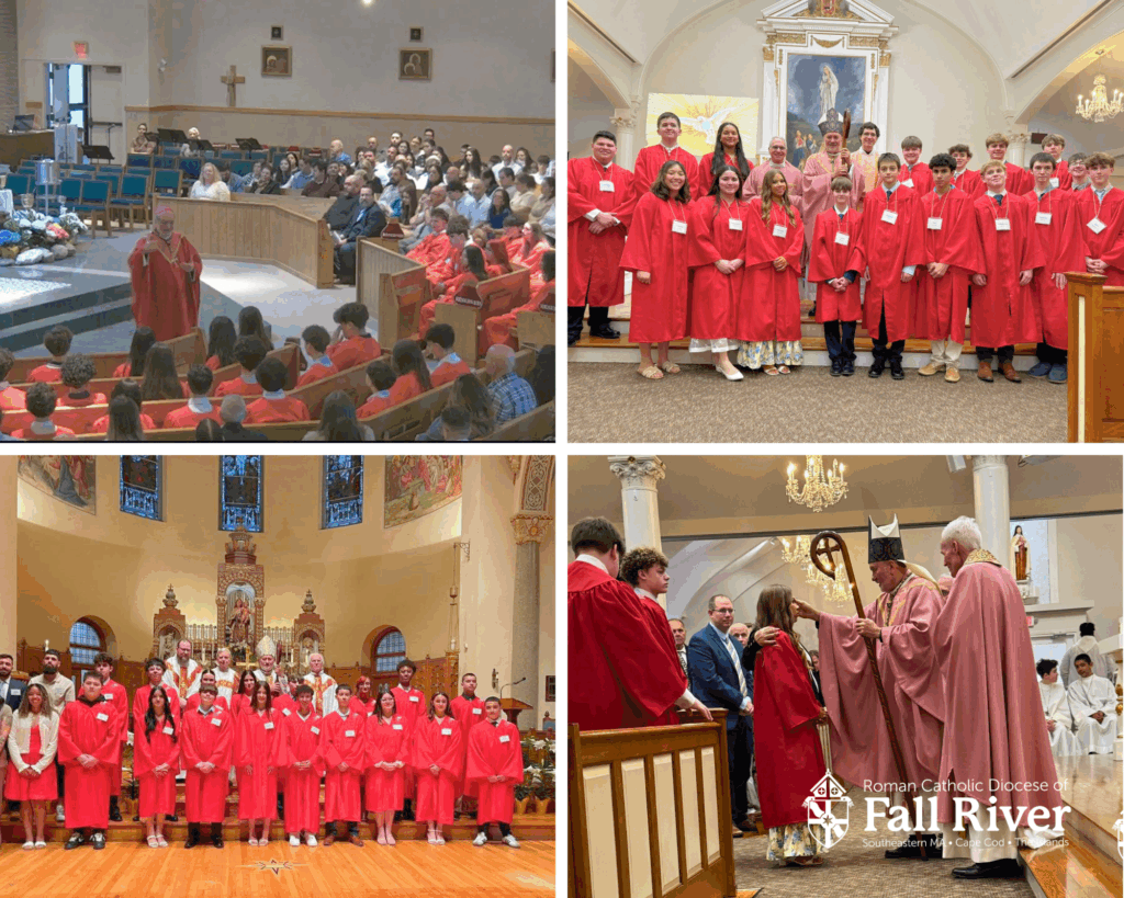 Confirmed in Faith, Living the Gospel Author: Reverendísimo Edgar M. da Cunha, S.D.V., D.D. Bishop's Blog 22 Abr 2026 Share Confirmed in Faith, Strengthened by the Spirit This is the time of year when I spend a good amount of time traveling throughout the Diocese to celebrate the Sacrament of Confirmation at our parishes, and it is a joy for me. Each year, when I gather with young people for the Sacrament of Confirmation, I find myself returning to a very simple starting point in their faith journey. Their Baptism. During my Confirmation homilies, I remind the confirmandi that this moment is part of a journey that began when they were baptized, when they first received the gift of faith. For many of them, that happened when they were infants, carried by parents and godparents who made promises on their behalf. Since that time, that faith has been nurtured and sustained by families, parish communities, and teachers who have helped it grow, often in quiet and unseen ways. I share with the confirmandi that they would not be standing there on the day of their Confirmation if that faith had not taken root in their lives. Something within them has led them to this moment. Faith is not simply an idea, but it is a gift that has been given and received, and now it calls for a response. That is why the renewal of Baptismal promises is such an important part of the celebration. What was once spoken for them is now spoken by them. When they are asked, “Do you believe?” and they respond, “I do,” it is no longer their parents’ voice but their own voice and commitment. It is a simple exchange, but a meaningful one. In those words, they claim the Church’s faith as their own and accept the responsibility that comes with it. From there, we turn our attention to the gift of the Holy Spirit.. Photos clockwise from top left: St. Gabriel the Archangel, St. Joseph, Guardian of the Holy Family Parish, Our Lady of Mt. Carmel, and St. Joseph, Guardian of the Holy Family Parish. During those Confirmation Masses, I often reflect on what happened when the Spirit came upon the apostles. They were no longer the same. Something changed. The fear and uncertainty that had once held them back gave way to courage, clarity, and purpose. The Spirit became the force that moved them outward, sending them into the world to live and share the Gospel. That same Spirit is given to those being confirmed. I remind the confirmandi that this is not simply a ritual or a moment to complete a Sacramental requirement. It is an invitation to be changed. The Holy Spirit enters their lives, guiding, strengthening, and helping them become more fully who they are called to be as disciples of Jesus Christ. And so I ask them a simple question: What will be different? May 1: Walk for Life at La Salette Shrine I want to extend an invitation to you to join people of life for the Third Annual Diocesan Walk for Life on Friday, May 1, 2026, at the National Shrine of Our Lady of La Salette in Attleboro. The day begins at 8:30 a.m. and includes the Rosary for Life, a keynote by Rev. Josemaria M. Barbin, F.I., followed by a Mass that I will celebrate, a prayer walk, and time for Adoration and Confessions, concluding by 2:30 p.m. This is a free, prayer-filled event. Bring your walking shoes and a bagged lunch, and please register in advance here. May God Bless you, +Bishop da Cunha Reverendísimo Edgar M. da Cunha, S.D.V., D.D. The Bishop of Fall River Audio Version provided by Audible Local Ledger. Listen Now. Categorías Mensajes del Obispo In the News Bishop's Blog Success Stories Photo Gallery Videos Related Posts Bishop's Blog 14 Abr 2021 Settling into the Easter Season Three Words—Confirmation Thoughts One of the responsibilities as Bishop, I truly enjoy, is conferring the Sacrament of Confirmation. In 2020, one of the encouraging signs our country, our state, and … Read More Bishop's Blog 29 Jul 2020 Confirmation Gifts During a recent Confirmation, I began my homily reflection by asking a question. If Jesus came here today and allowed you to ask for whatever you wanted, what would … Read More Bishop's Blog 7 Dic 2022 A Busy First Week of December Marian Medals This past Sunday, during a beautiful celebration in our Cathedral, I presented this year’s Marian Medal Awards. The 66 recipients of this year’s medal inspire others with their … Read More