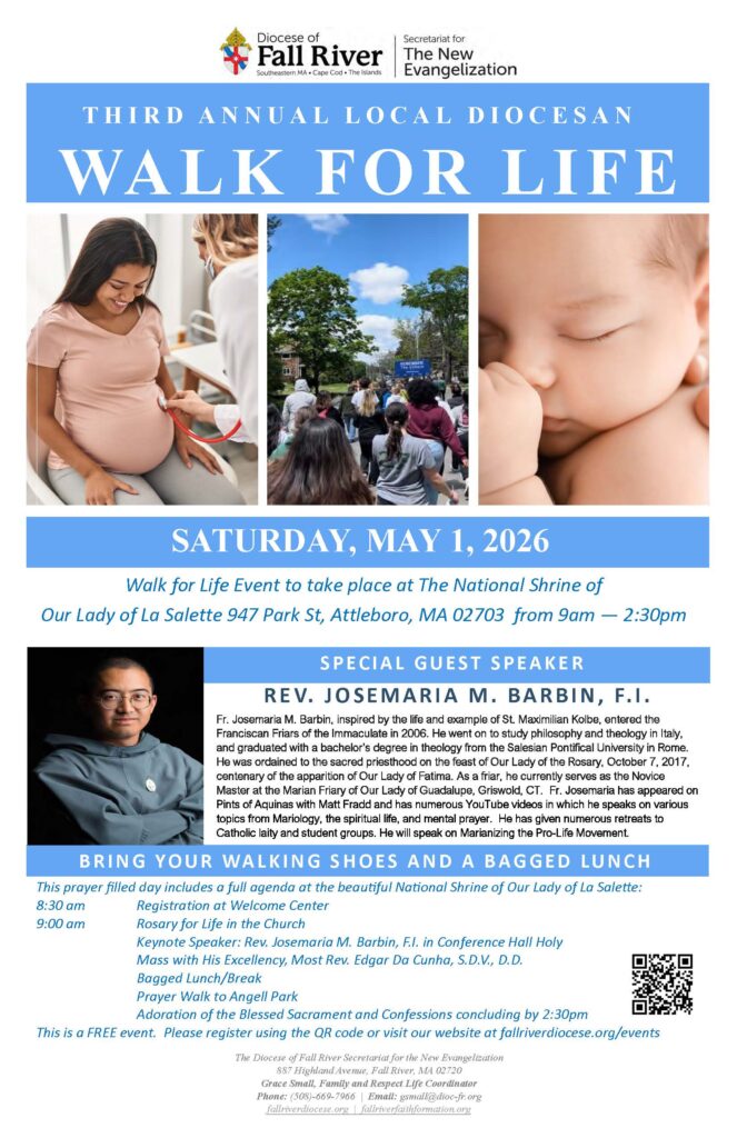 For more information, please contact Grace Small, Family and Respect Life Coordinator – Secretariat for the New Evangelization, at gsmall@dioc-fr.org or 508-669-7966.