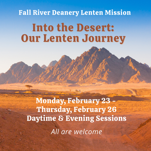 Into the Desert: Our Lenten Journey is the theme of the Fall River Deanery 2026 Lenten Mission, to take place Monday, February 23 – Thursday, February 26, with two sessions each day.